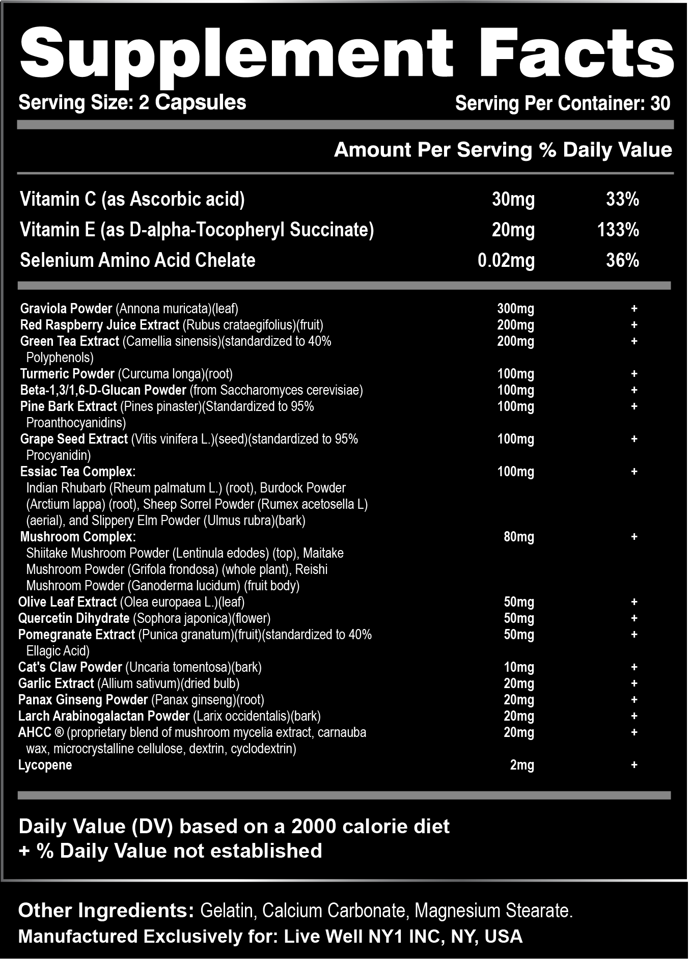 Our Immunity Blend is packed with powerful antioxidants, including Graviola Powder, Red Raspberry Extract, Beta 1,3/1,6 Glucan Powder, Essiac Tea Complex, Green Tea Extract, and Turmeric. These ingredients work synergistically to support your immune system and keep you feeling strong and resilient.